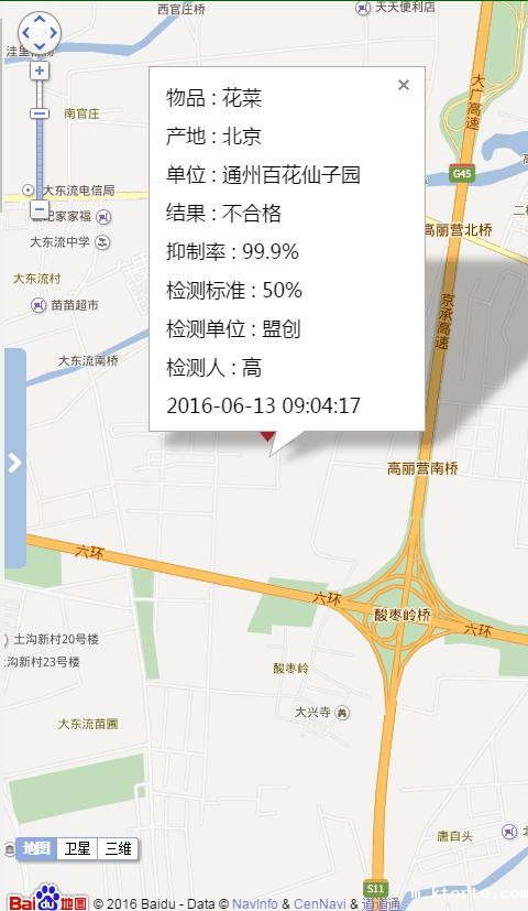 10、GIS地图生成:利用检测设备内置的GPS模块,实现卫星定位数据捆绑测试数据信息,实施GIS地图定点监控每个检测点的位置信息,监测者可在其卫星定位图标上点击位置坐标查看该检测点测试数据相关索引信息。