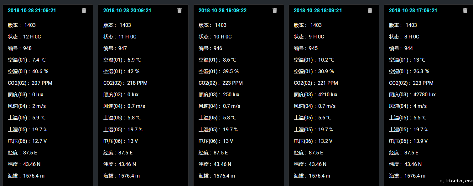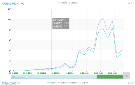 清单明细式显示方式,可以直观地查看各个环境因素参数在某个时间点的监测数据。